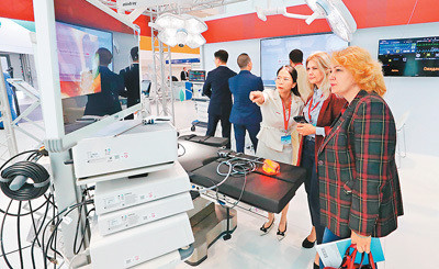 观众在白俄罗斯中白工业园举行的2024中国医学装备(白俄罗斯)展览会上参观。 任科夫摄(新华社发)
